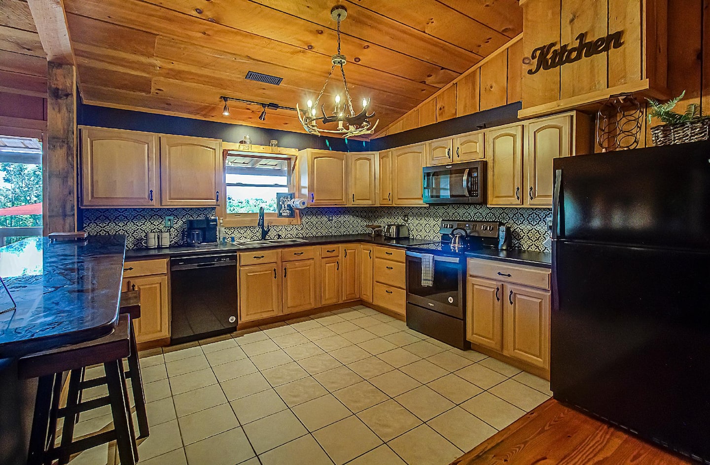 Open concept design living room is the heartbeat of the cabin. Sit back in this relaxing and comfy area, enjoy your favorite TV show, listen to some music, read a book, and create memorable moments with your friends and family.