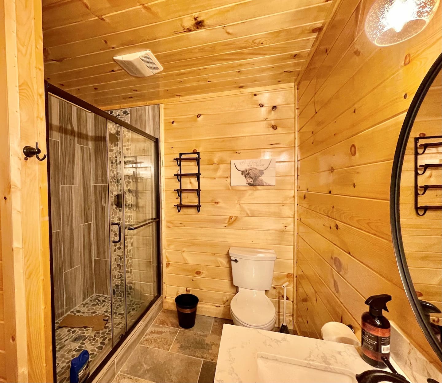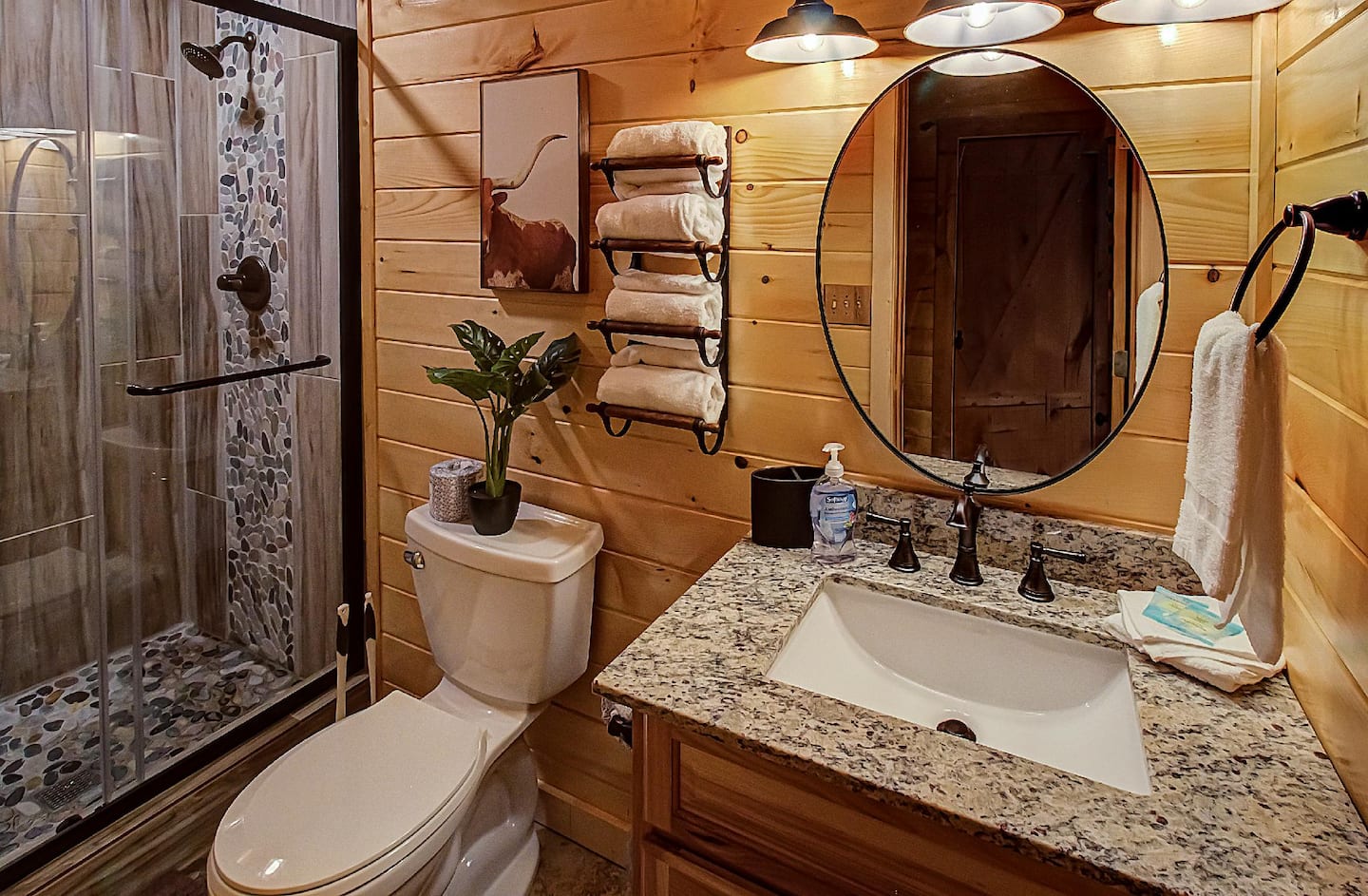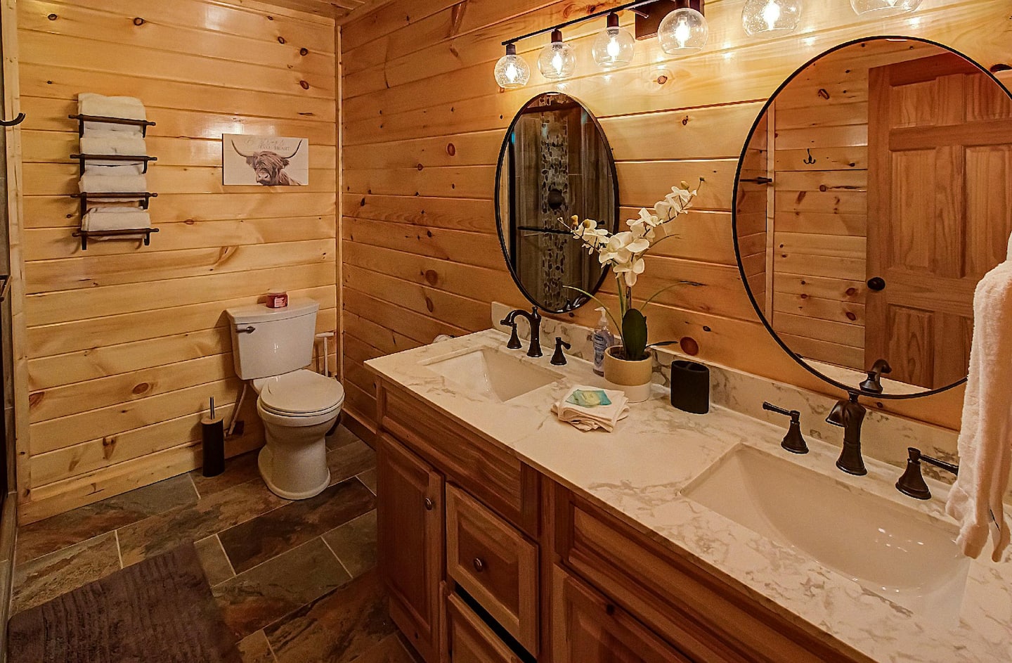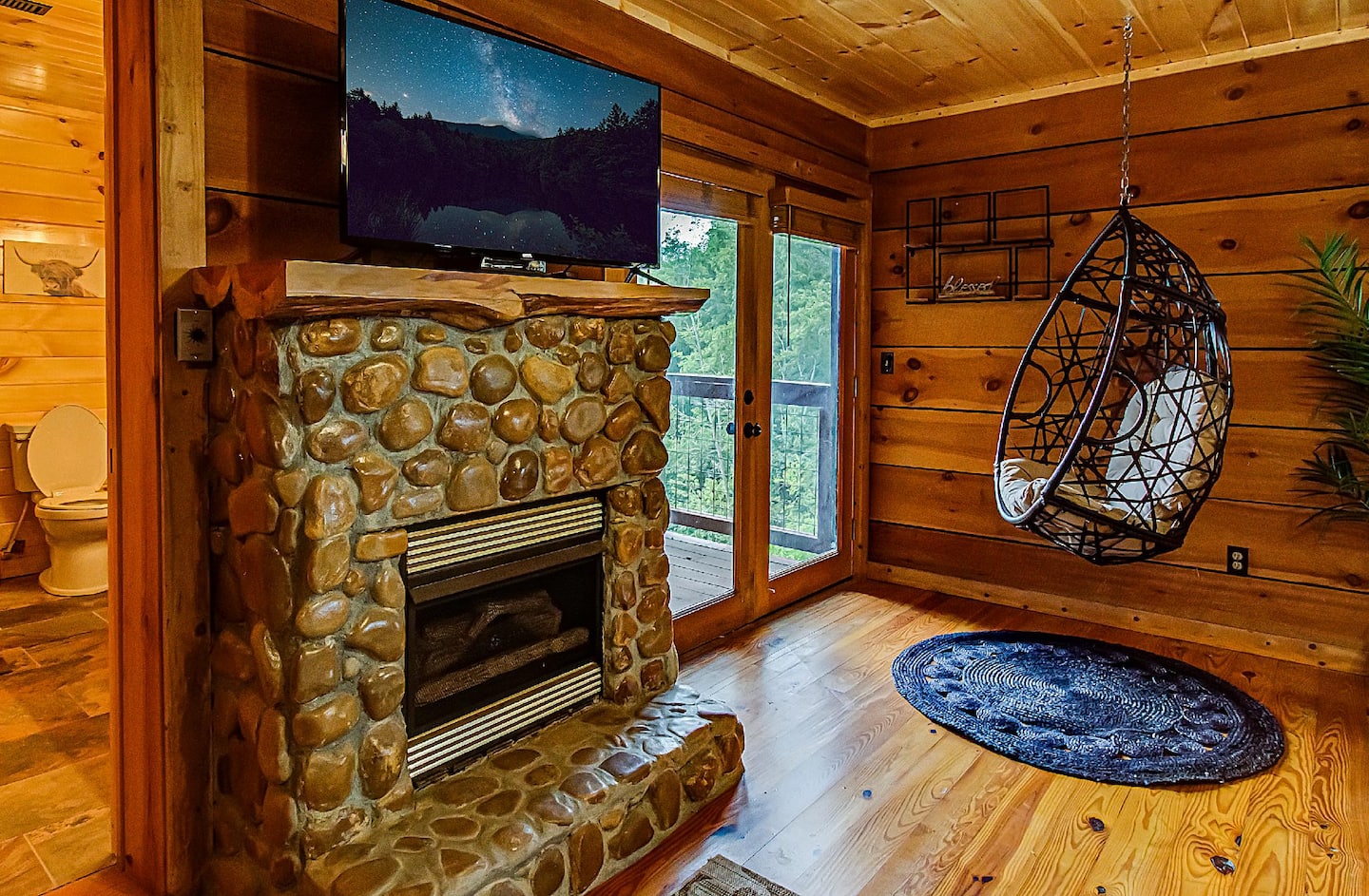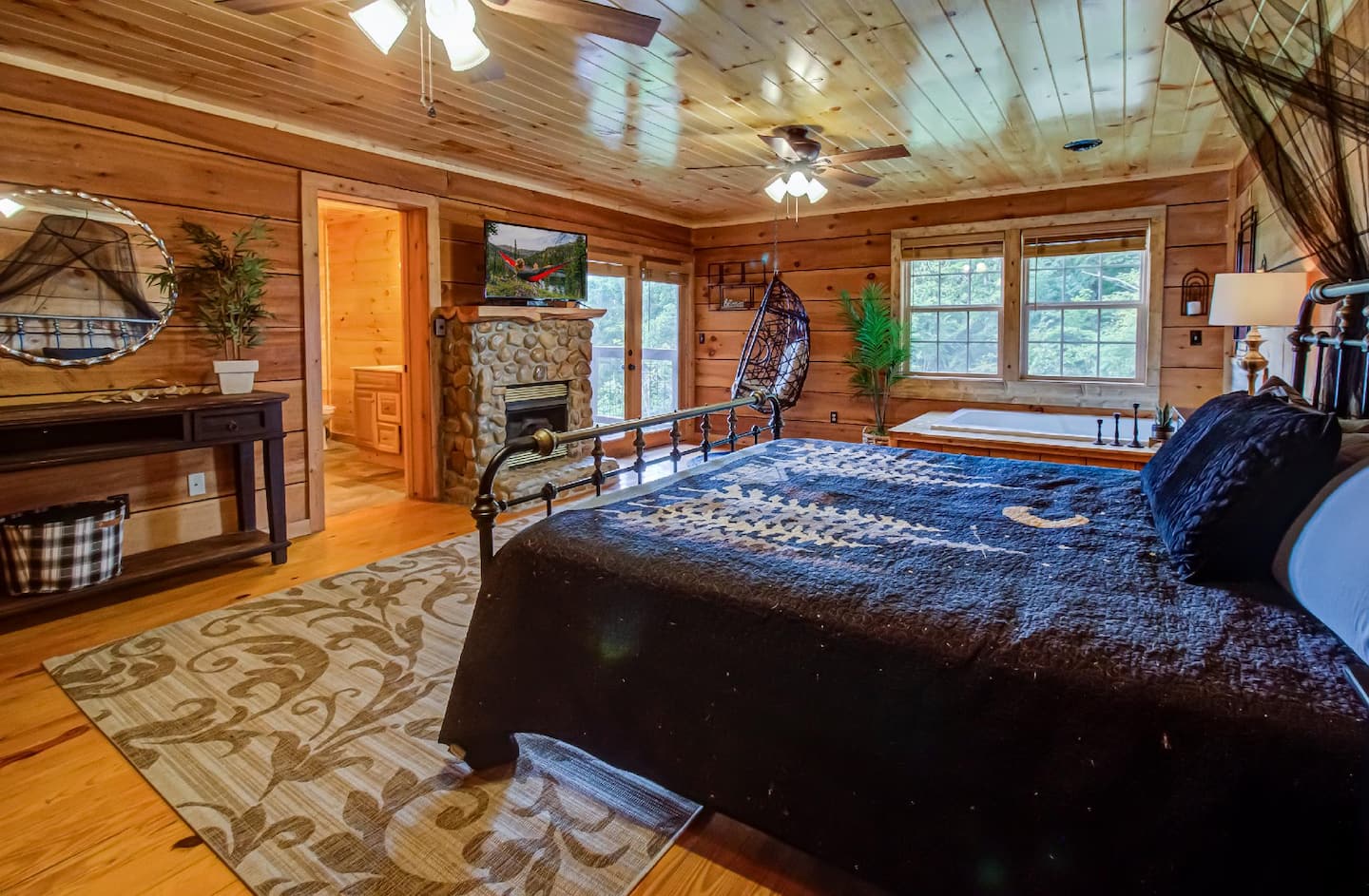 State-of-the-art amenities can be found in all rooms, adding a contemporary touch to this secluded cabin.