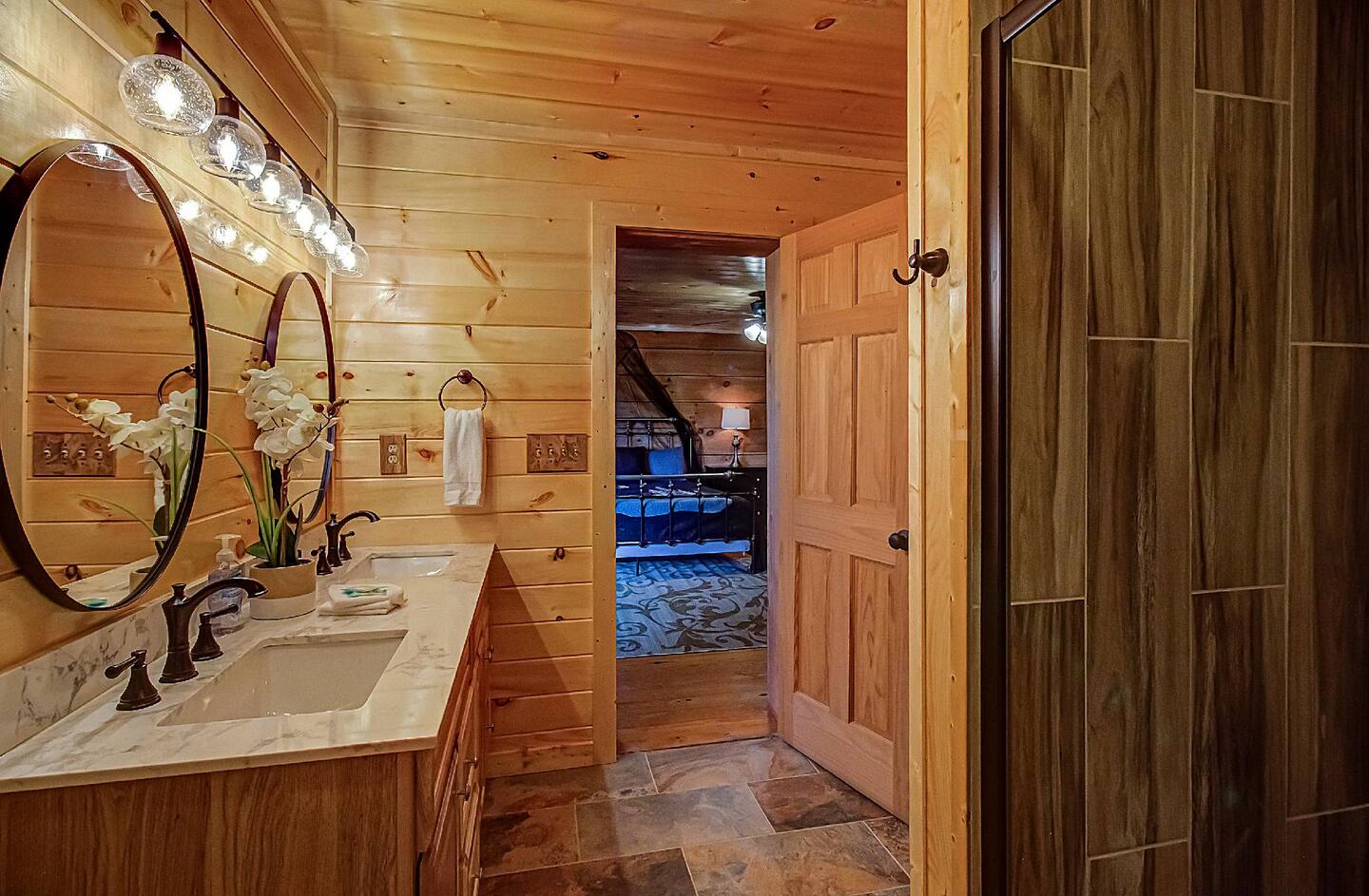 The cabin features four tastefully furnished bedrooms. All offer high levels of comfort and convenience needed to relax and rest after a memorable day of adventuring throughout the rich natural settings of Sevierville.