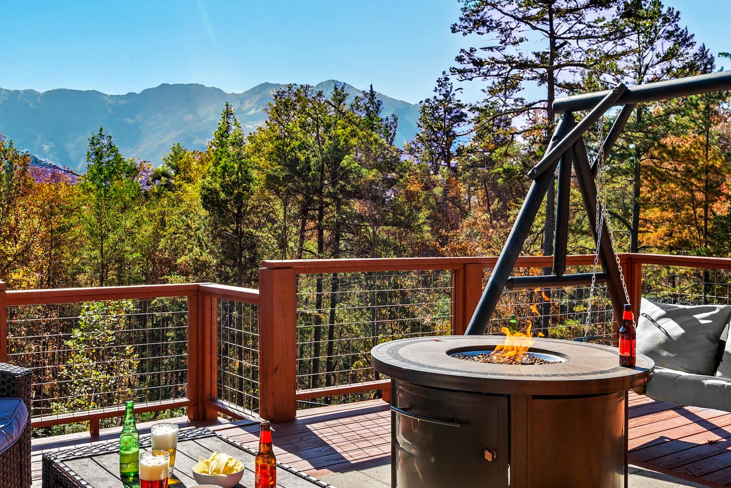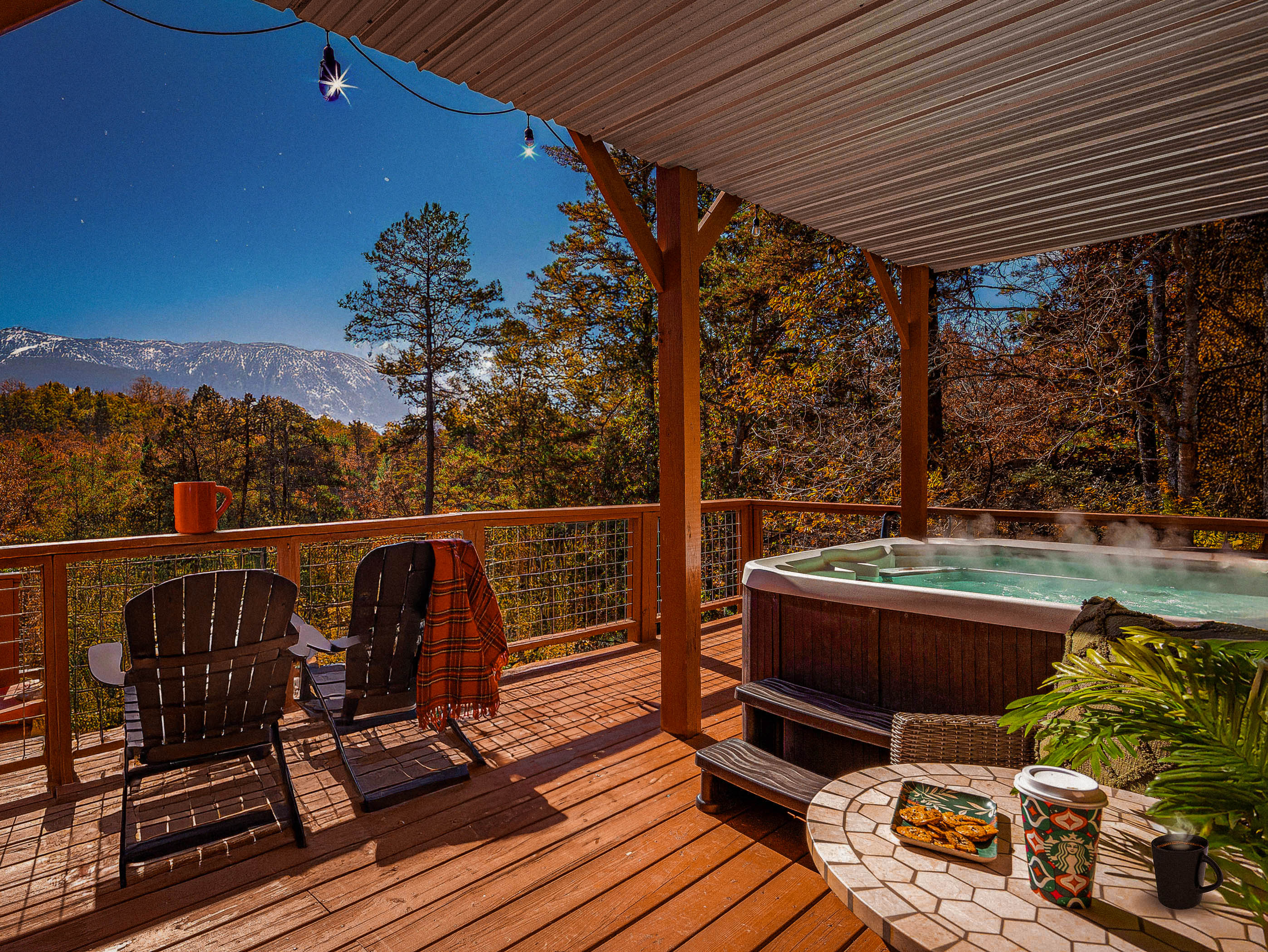 - A hot tub with mountain views to help you de-stress.