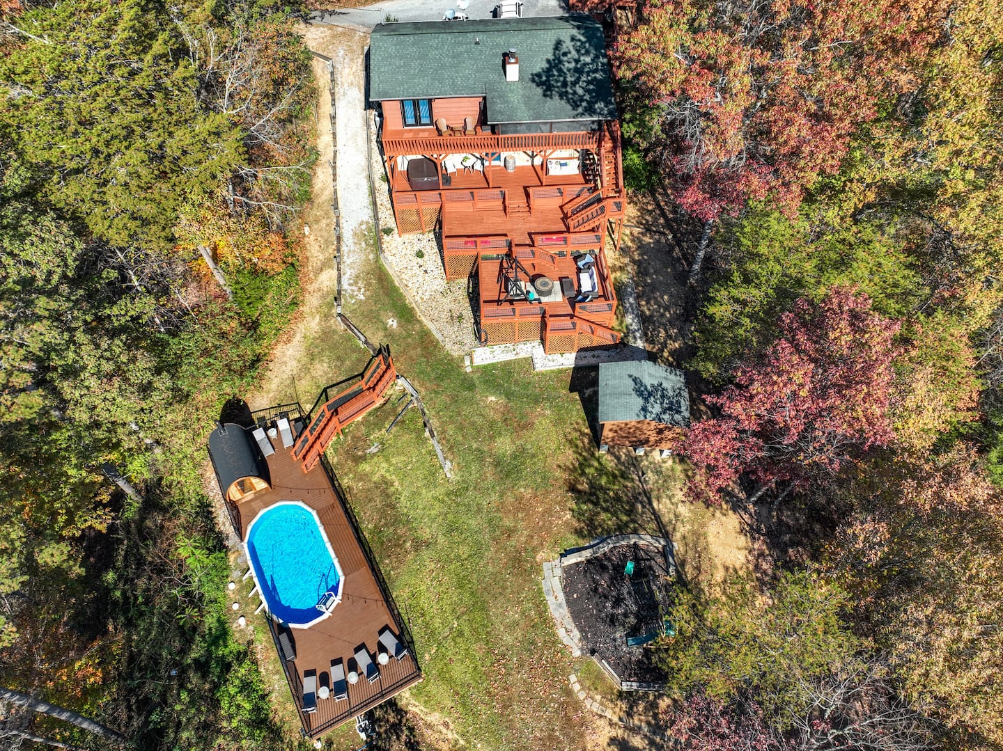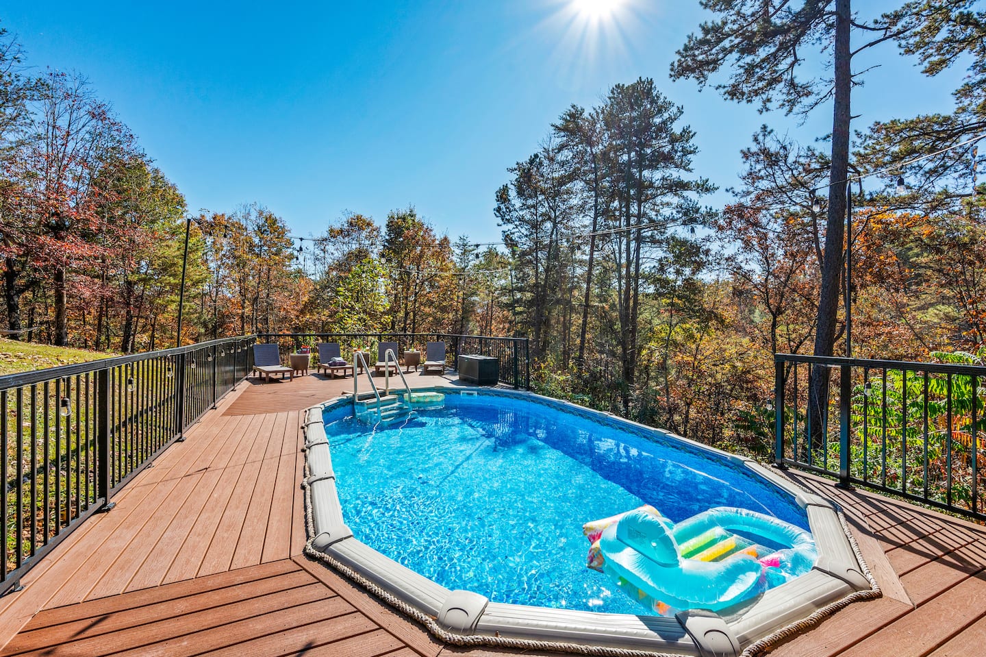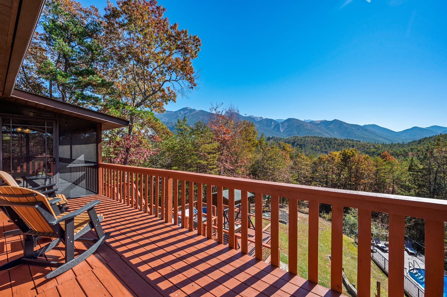 Enjoy stunning views of Mount LeConte from the 3-level decks, where you can sip your morning coffee or unwind at sunset. The cabin features a 24x12 private pool, always open and perfect for both kids and adults. Adjacent to the pool, you'll find a cozy wood-burning sauna—the ideal spot to relax and rejuvenate after a day of adventure or simply soak in the tranquility of the mountains.