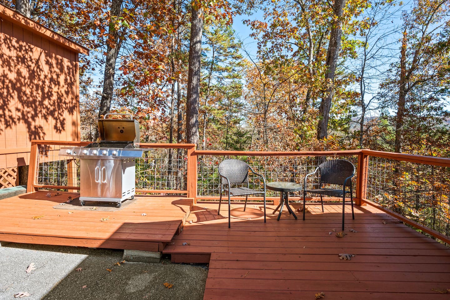 - A gas grill for outdoor barbecues and dining with a view.