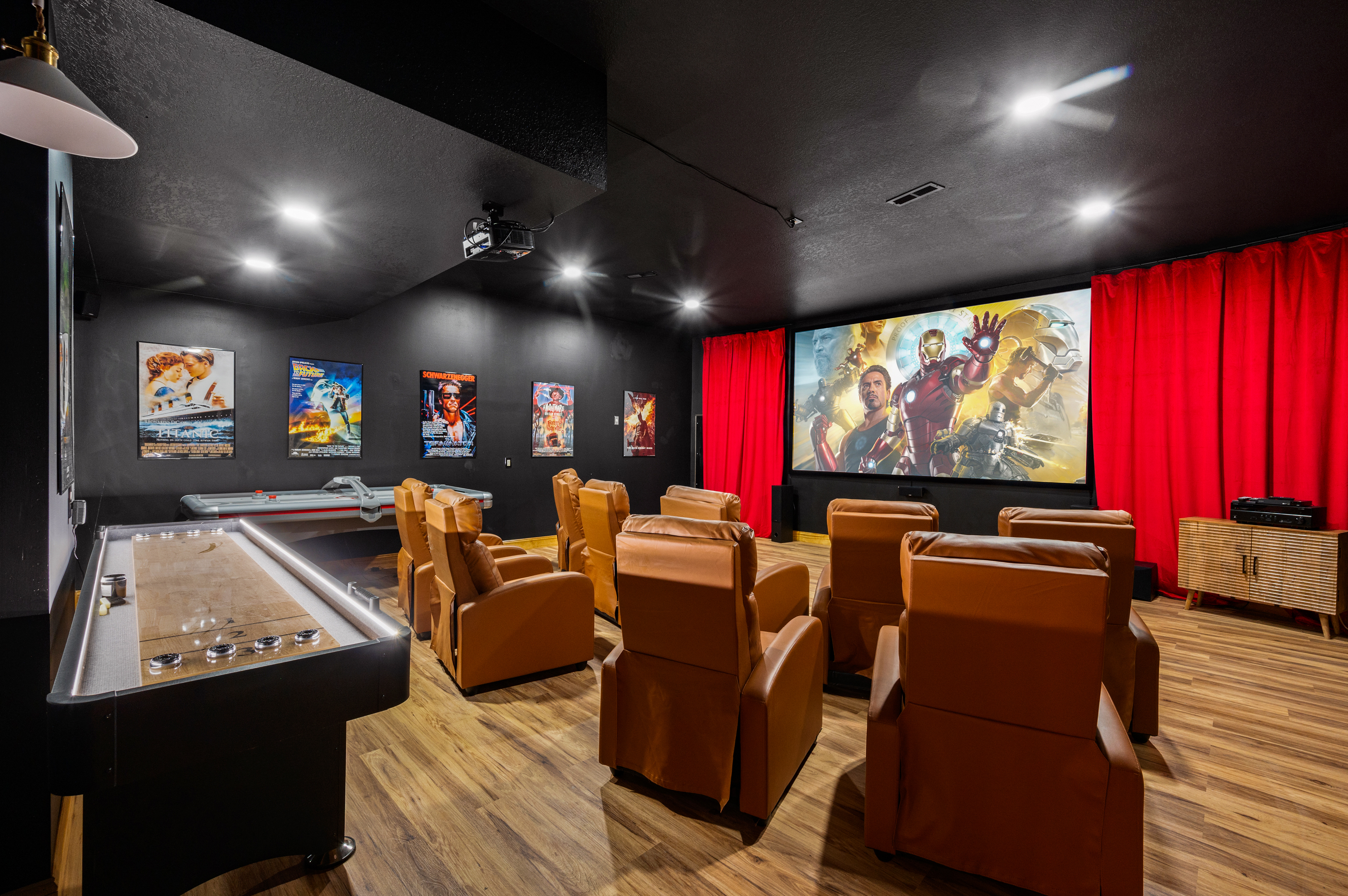 Entertainment is taken to new heights with our giant 15' screen movie theater, equipped with 10 plush seats. Whether you're seeking a cozy night in or a fun-filled movie marathon, this space will be a hit with guests of all ages.